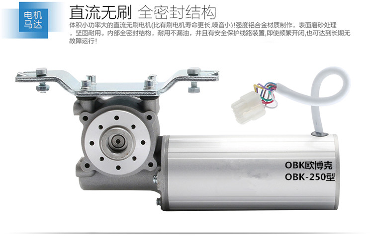 OBK歐博克250型重型自動(dòng)門機(jī)載重雙開門250公斤*2,單開門300公斤,防脫軌設(shè)計(jì),軌道規(guī)格有單支長度2.1米、2.4米、3米、4.2米。