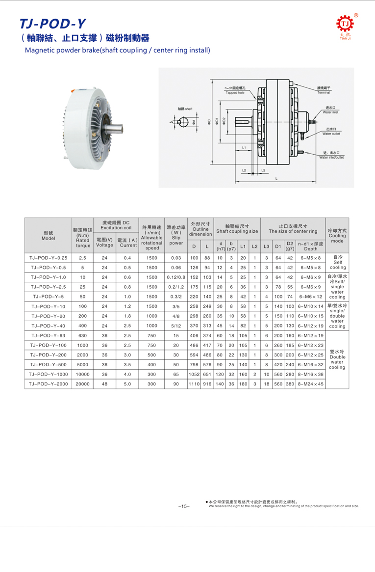 東莞天機(jī)傳動(dòng)(臺(tái)灣天機(jī)牌)水冷磁粉剎車(chē)器和風(fēng)冷磁粉制動(dòng)器都是工業(yè)制動(dòng)器中的一種,使用的DC24V直流電壓,操作更加安全,使用簡(jiǎn)單,維護(hù)容易。