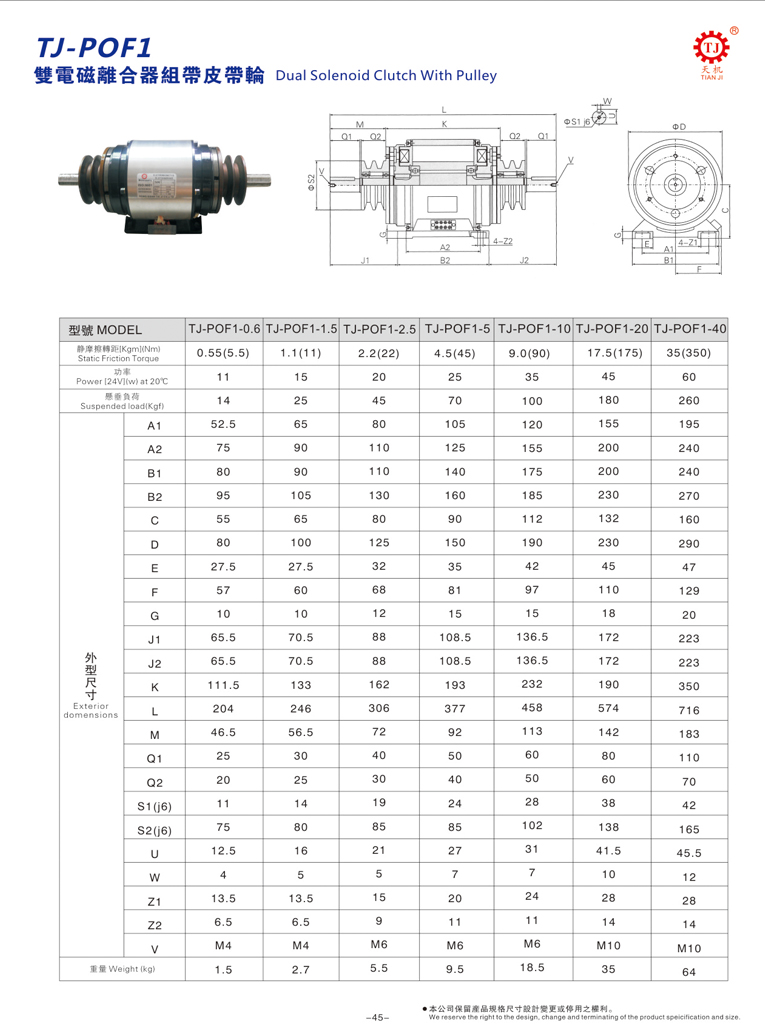 雙電磁離合器帶皮帶輪,雙電磁離合器POF1型