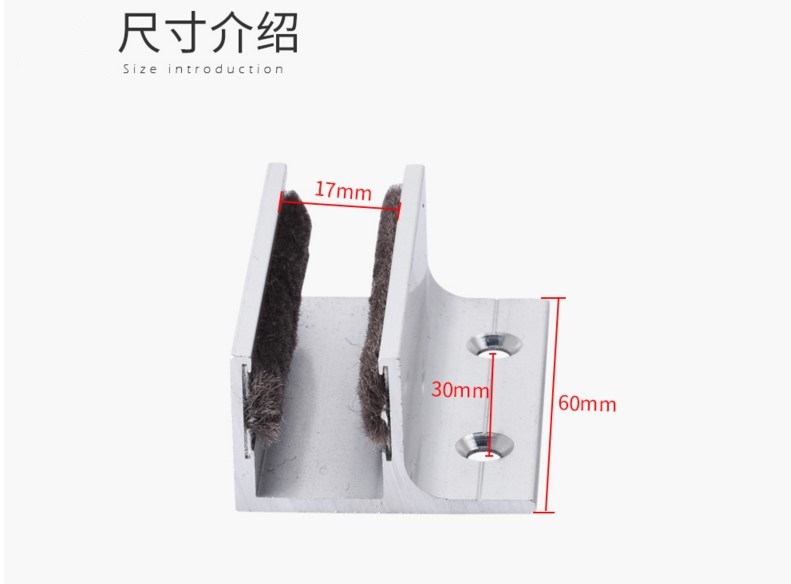 F型止擺器采用鋁質(zhì)材質(zhì),雙邊都設(shè)有毛條,提升門在移動過程中的靜音效果。適用于各類玻璃門、自動門及感應(yīng)平移門。具有止擺、定位、防晃等作用。適夾門厚度:8mm-----12mm。